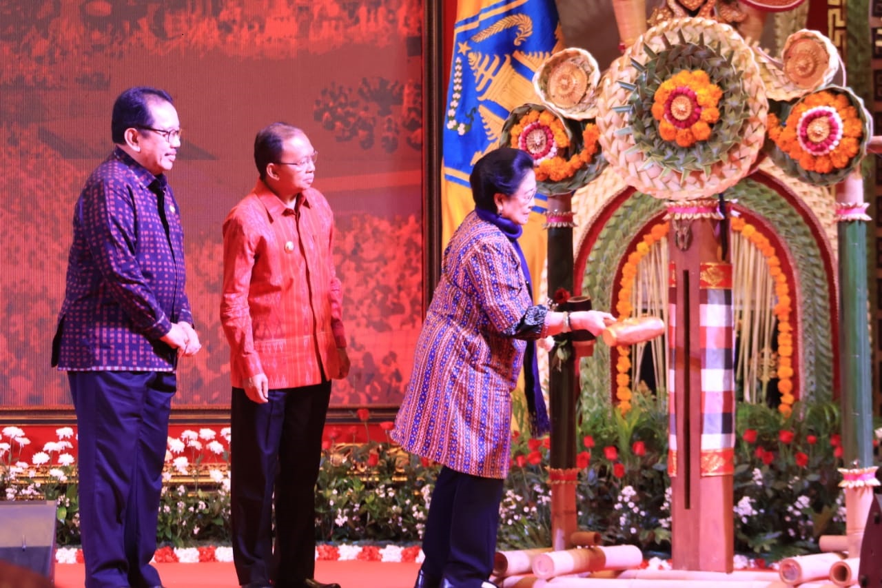 KataBali.com – Badung – Presiden Ke-V Republik Indonesia, Ibu Prof. Dr. (HC), Hj. Megawati Soekarnoputri, membuka secara resmi Seminar Haluan Pembangunan Bali Masa Depan, 100 Tahun Bali Era Baru, pada hari Jumat (Sukra Umanis, Kelawu), 5 Mei 2023, bertempat di Hotel Trans Resort, Bali. Acara Seminar dihadiri secara langsung oleh: Menteri Perencanaan Pembangunan Nasional RI, Suharso Monoarfa; Menteri Pekerjaan Umum dan Perumahan Rakyat RI, Basuki Hadimuljono; Wakil Menteri Dalam Negeri RI, John Wempi Wetipo; Kepala BRIN RI, Laksana Tri Handoko; dan Pejabat Eselon I Kementerian Perencanaan Pembangunan Nasional RI, Kementerian Dalam Negeri, dan Kementerian Keuangan. Peserta Seminar berjumlah lebih dari 300 orang, berasal dari seluruh komponen masyarakat Bali, yakni: Sulinggih, akademisi, tokoh masyarakat, praktisi, asosiasi, dan organisasi masyarakat.