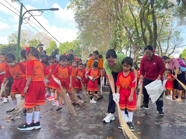 “Terima kasih anak-anak karena tadi sudah ikut bersih-bersih, menyapu dan memunguti sampah,” ucapnya usai kegiatan bersih-bersih.