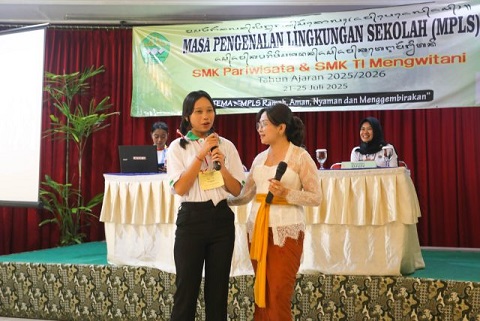 Kepala SMK Pariwisata Mengwitani I Made Darma Putra dalam ucapan selamat datangnya menyampaikan, atas nama keluarga besar SMK Pariwisata dan SMK TI Mengwitani merasa sangat senang karena Bunda Antinarkoba Kabupaten Badung sudah berkenan hadir dalam acara sosialisasi narkoba serangkaian dengan kegiatan MPLS pada hari ini.