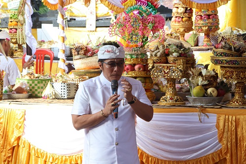 Lebih lanjut, ia menyadari bahwa masyarakat Bali selama ini tidak luput dari berbagai upacara yadnya dalam kehidupan sehari-hari. Upacara tersebut tidak dipungkiri memerlukan biaya dan tenaga. Untuk itu, ia pun berkomitmen untuk membantu pembiayaan upacara yadnya. “Sehingga ke depan umat bisa fokus untuk melaksanakan upacara yadnya saja,” tuturnya.