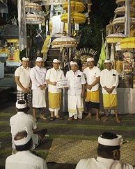 KataBali.com – Badung – Bupati Badung I Wayan Adi Arnawa menghadiri sekaligus melaksanakan persembahyangan bersama dalam rangka pujawali di Pura Dang Kahyangan Taman Sari, Banjar Alangkajeng, Desa Mengwi, Senin (6/10). Pada kesempatan tersebut, Bupati secara simbolis menyerahkan bantuan dana hibah APBD perubahan tahun 2025 sebesar Rp 377 juta kepada Kelian Banjar Adat Alangkajeng.