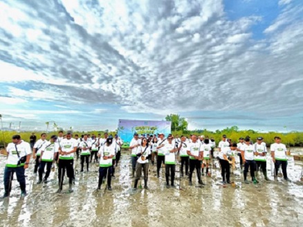 Para peserta menanam ribuan bibit di kawasan pesisir yang sebelumnya mengalami tekanan lingkungan akibat cuaca ekstrem, arus laut, dan limbah.