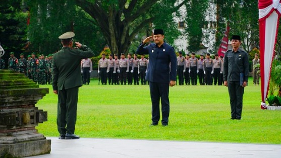 KataBali.com – Badung – Pemerintah Kabupaten Badung menggelar apel Peringatan Hari Pahlawan di Lapangan Mangupraja Mandala, Puspem Badung, Senin (10/11). Selaku Inspektur Upacara, Wakil Bupati Badung Bagus Alit Sucipta. Upacara diikuti Forkopimda Badung, pimpinan dan anggota DPRD Badung, Sekda Badung IB Surya Suamba, pimpinan perangkat daerah, TNI/Polri, Legiun Veteran Republik Indonesia, ASN dan para siswa.