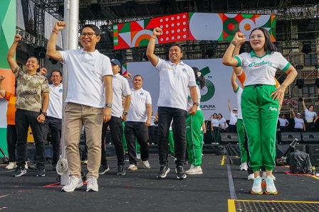 KataBali.com – Badung – Dalam rangka memeriahkan Hari Ulang Tahun (HUT) ke-16 Mangupura, Bupati Badung I Wayan Adi Arnawa turut hadir dan berpartisipasi dalam acara senam bersama yang diselenggarakan oleh Tim Penggerak (TP) PKK Kabupaten Badung. Acara yang meliputi Senam Sat Kerti Loka Bali, Senam Adi Cipta, dan Senam Garbasari ini berlangsung di Lapangan Pusat Pemerintahan Kabupaten Badung, Minggu (23/11).