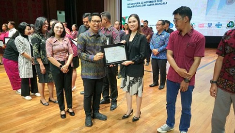 kataBali.com – Badung – Serangkaian HUT ke-16 Ibu Kota Badung “Mangupura”, Bupati Badung I Wayan Adi Arnawa menyerahkan penghargaan kepada pemenang kompetisi Bank Sampah, TPS3R, Sekolah Adiwiyata serta pelaku usaha/kegiatan dalam perlindungan dan pengelolaan lingkungan hidup (hotel dan restoran) di Kabupaten Badung tahun 2025. Penyerahan penghargaan dilaksanakan di Balai Budaya Giri Nata Mandala, Puspem Badung, Sabtu (22/11).