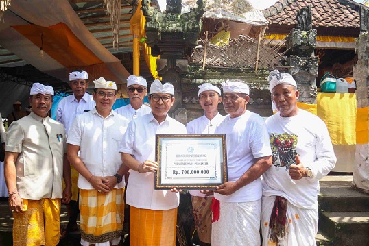 Sebagai wujud dukungan pemerintah, Bupati Wayan Adi Arnawa menyerahkan bantuan dana hibah APBD Perubahan 2025 sebesar Rp700 juta, yang diterima langsung oleh Ketua Panitia Karya, Nyoman Nurdiana.