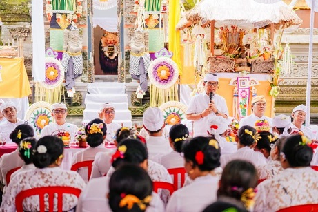 “Semangat ngayah ini adalah cerminan nilai luhur yang patut diwariskan. Pemerintah hadir untuk ikut ngrastiti bakti sekaligus menjadi upasaksi. Semoga Ida Bhatara yang berstana di sini senantiasa memberikan tuntunan agar upacara berjalan labda karya sida sidaning don,” ujarnya.